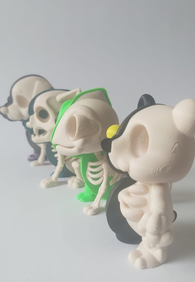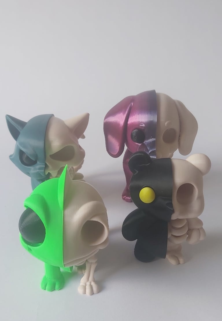Estas figuras impresas en 3D muestran la mitad del cuerpo y la mitad del esqueleto, combinando ternura y ciencia en una sola pieza. 🦴✨