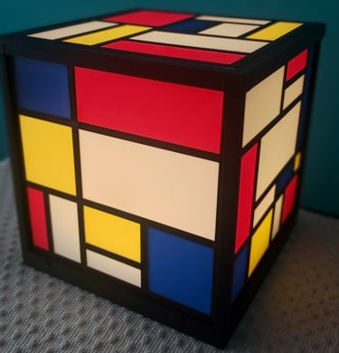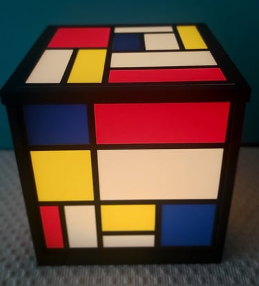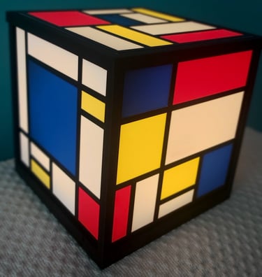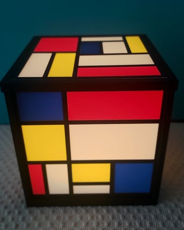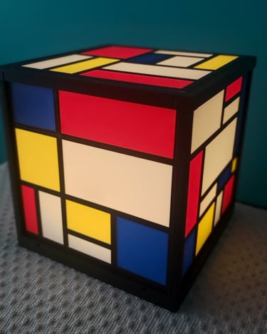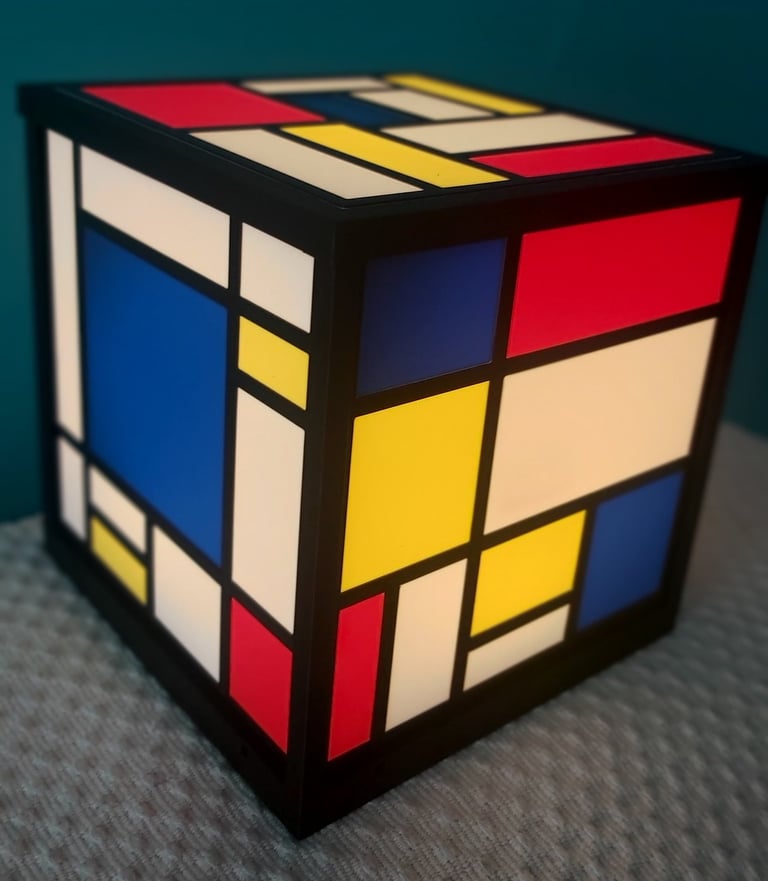 Inspirada en el inconfundible estilo de Piet Mondrian, esta lámpara impresa en 3D combina líneas geométricas, bloques de color primario y una estructura cúbica perfecta que le da un carácter moderno y minimalista a cualquier espacio.